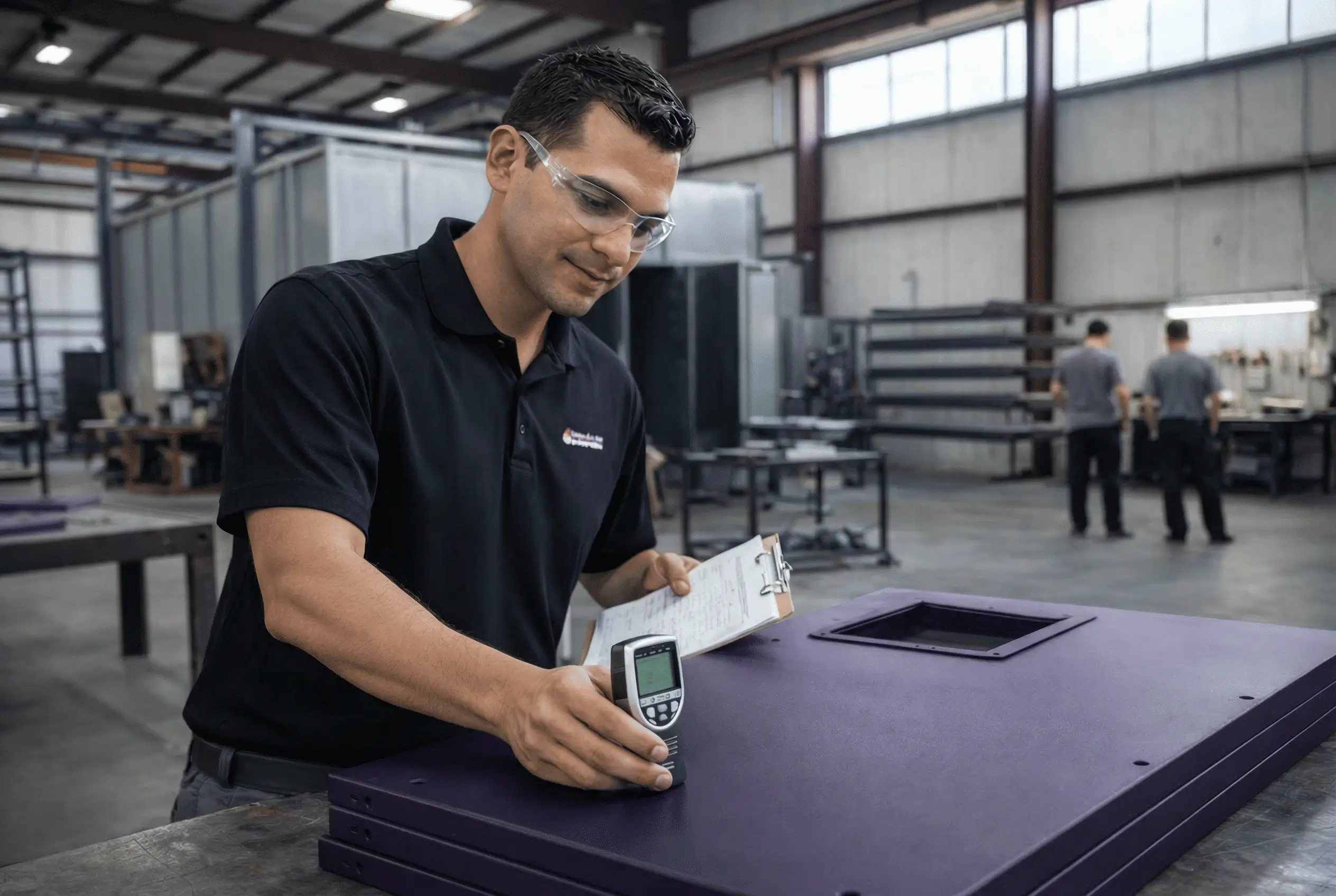 Each coated part is inspected for coverage, consistency, and finish quality. Only parts that meet our standards are approved for release, delivery, or pickup.